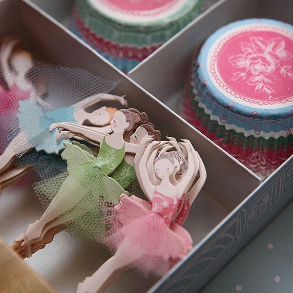 24 caissettes et 24 piques " toppers " en papier & rubans sur le thème de la danse.