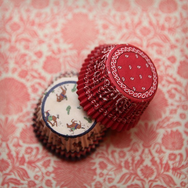 24 caissettes et 24 piques "toppers" en papier et ruban sur le thème des cowboys.