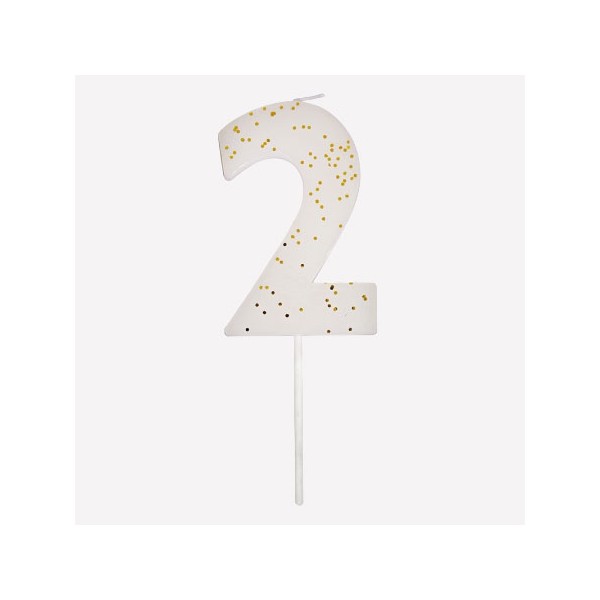 Bougie chiffre 2 - blanche à paillettes