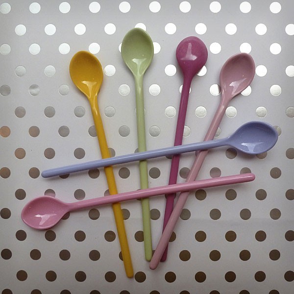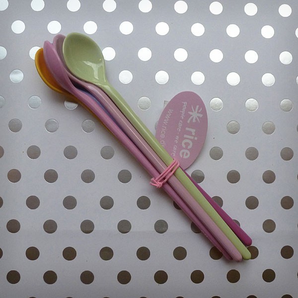 6 longues cuillères RICE en mélamine dans des tons de roses. Parfaites pour donner à manger aux enfants, idéales pour la confiture.