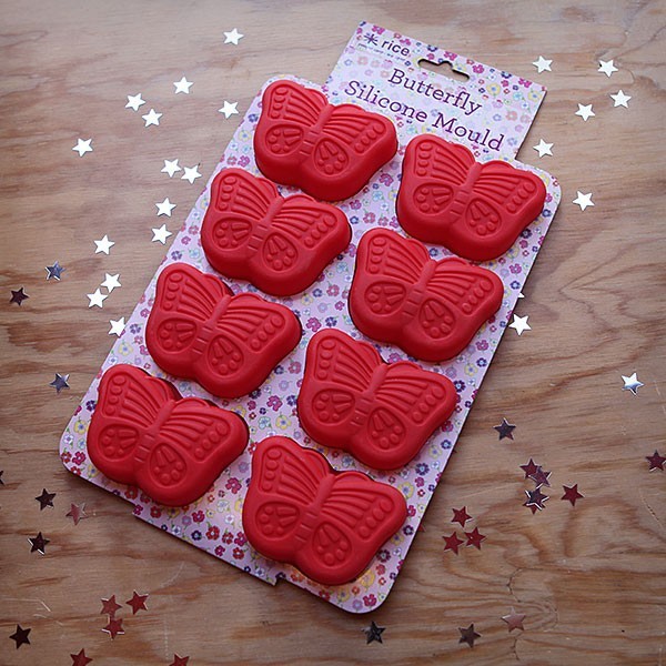 Moule en silicone pour réaliser 8 gâteaux papillons.