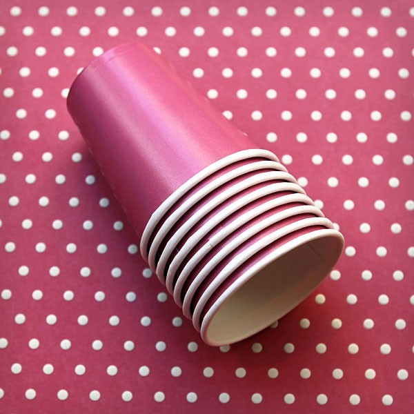 8 gobelets en carton résistant de 270 ml. : 8cm de hauteur et 6 cm de diamètre.